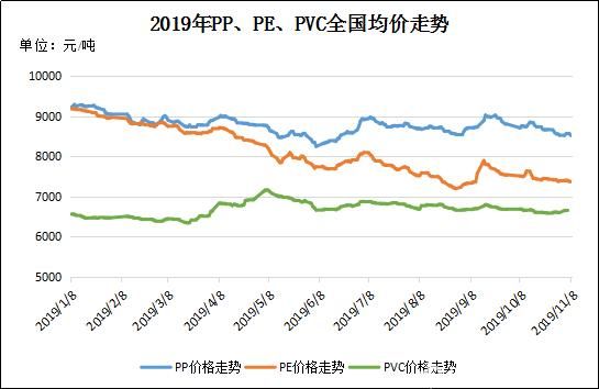 圖3 2019年PP、PE、PVC全國均價走勢