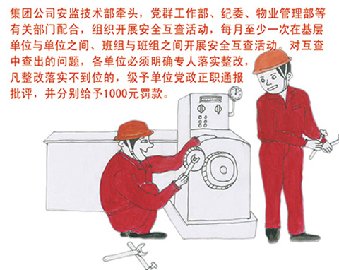 (四)認(rèn)真開展安全隱患排查制度,積極推行安全互查活動(dòng)。基層各單位黨政正職每周必須組織1次本單位安全隱患排查活動(dòng),對(duì)查出的問題要嚴(yán)格按照四定表要求落實(shí)整改,并于當(dāng)月25日之前上報(bào)集團(tuán)公司安監(jiān)技術(shù)部,重大安全隱患必須以書面形式報(bào)告集團(tuán)公司。