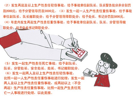 (一)安全責(zé)任追究。1、對觸犯“20條紅線”的相關(guān)責(zé)任人必須嚴(yán)肅查處。干部嚴(yán)重“三違”的,給予撤職處分;員工嚴(yán)重“三違”的,給予開除留用察看處分,直至解除勞動合同;
