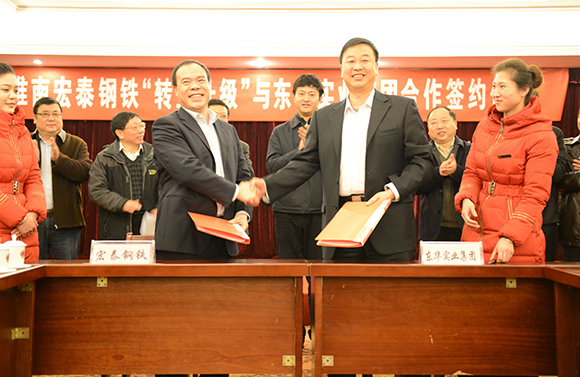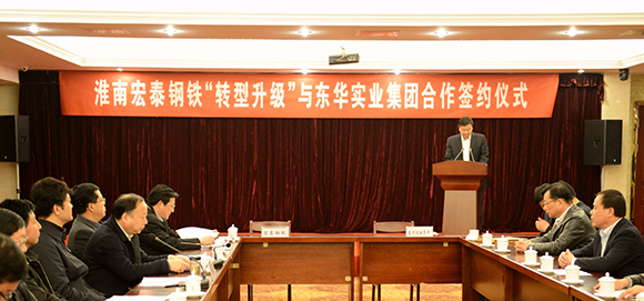2月26日上午,東華實(shí)業(yè)集團(tuán)與淮南宏泰鋼鐵“轉(zhuǎn)型升級(jí)”合作簽約儀式,在東華怡樂生態(tài)園隆重舉行;茨鲜懈笔虚L(zhǎng)錢力出席儀式并見證簽約,市有關(guān)部門負(fù)責(zé)同志參加了簽約儀式。東華集團(tuán)董事長(zhǎng)、總經(jīng)理金克緒代表東華集團(tuán),宏泰鋼鐵公司董事長(zhǎng)林華情代表宏泰公司就項(xiàng)目合作進(jìn)行簽約并分別發(fā)言。建設(shè)銀行、交通銀行、農(nóng)業(yè)銀行、通商銀行等銀行負(fù)責(zé)人以及相關(guān)企業(yè)領(lǐng)導(dǎo)參加了簽約儀式。