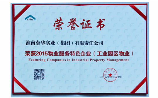 近日,中物協(xié)授予東華實(shí)業(yè)集團(tuán)“2015年物業(yè)服務(wù)特色企業(yè)(工業(yè)園區(qū)物業(yè))”榮譽(yù)稱號(hào)。