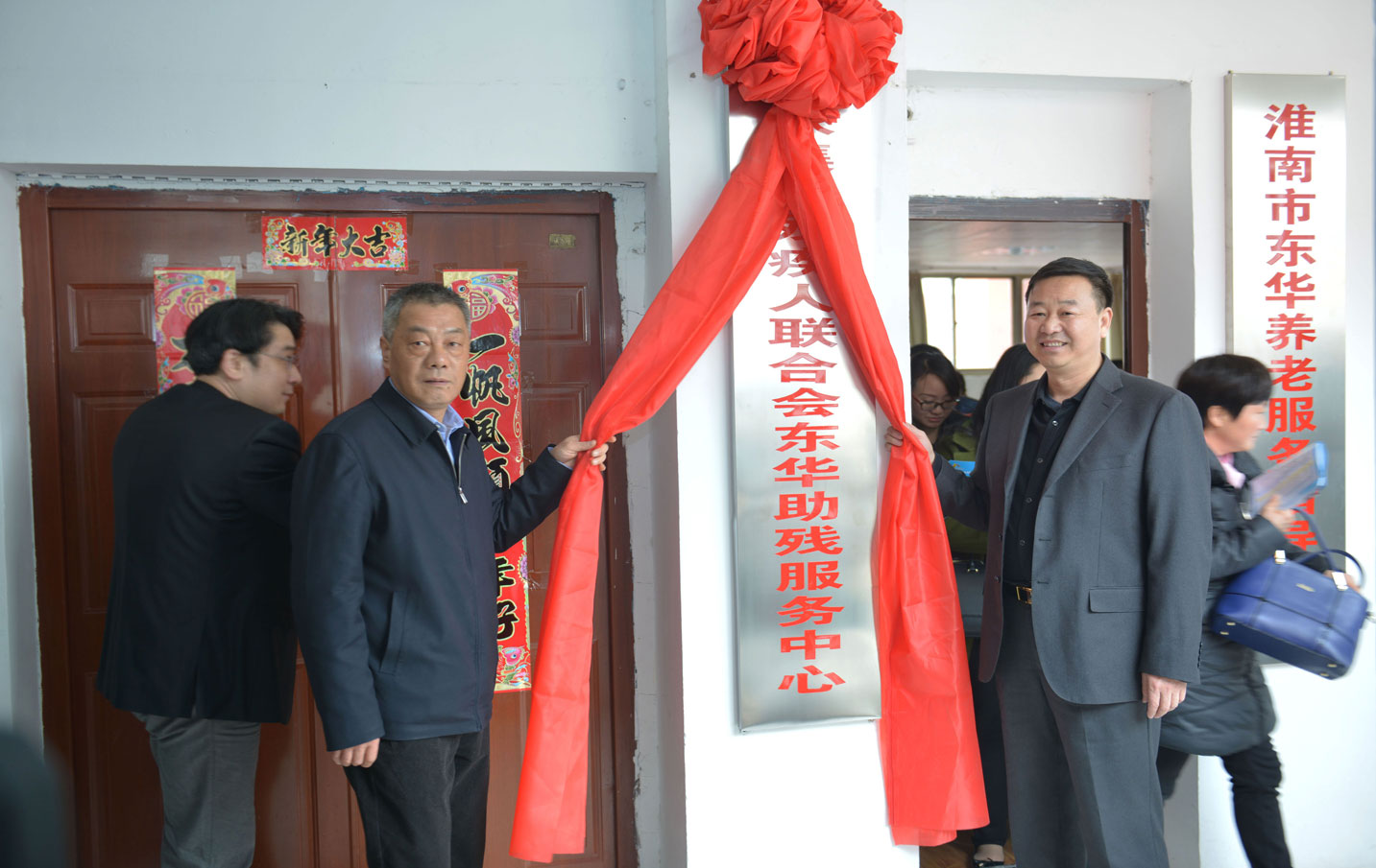 東華實(shí)業(yè)集團(tuán)黨委書(shū)記、董事長(zhǎng)金克緒與淮南市殘聯(lián)理事長(zhǎng)束永穩(wěn)對(duì)“謝家集區(qū)殘疾人聯(lián)合會(huì)東華助殘服務(wù)中心”進(jìn)行了揭牌。