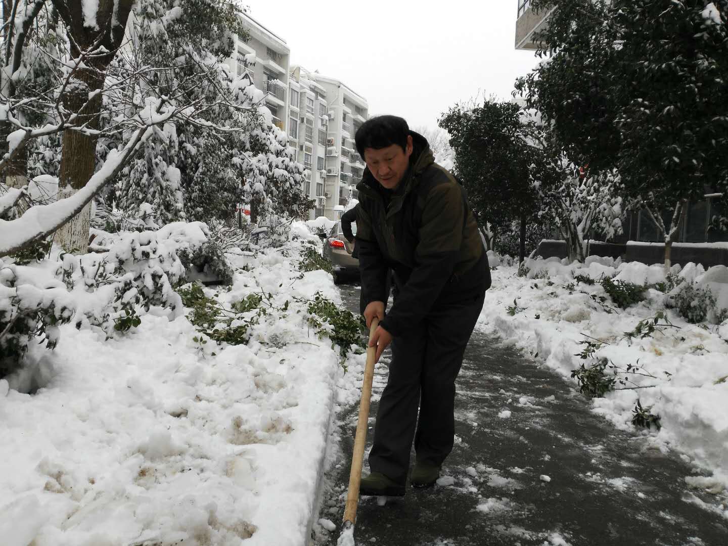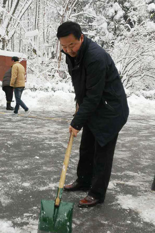 在礦業(yè)集團(tuán)機(jī)關(guān)大院內(nèi),黨委書(shū)記、董事長(zhǎng)金克緒手持鐵鍬一鏟一鏟將道路積雪清除,機(jī)關(guān)工作人員在他的帶領(lǐng)下,不顧嚴(yán)寒,冒雪大干,經(jīng)過(guò)三個(gè)小時(shí)的奮戰(zhàn),終將道路積雪鏟除。工作人員還對(duì)院內(nèi)大樹(shù)上的積雪進(jìn)行清除,防止積雪壓斷樹(shù)枝。