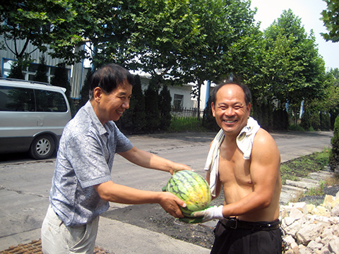 7月17日,集團(tuán)公司工會(huì)副主席朱宗杰、于蘇萍受集團(tuán)公司領(lǐng)導(dǎo)委托,分成兩個(gè)小組趕赴基層單位,向奮戰(zhàn)在高溫的一線員工表示慰問,并親自為他們送上了產(chǎn)自東華農(nóng)莊的西瓜,送上一份夏日的清涼。