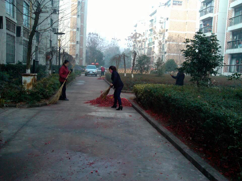 據(jù)有關(guān)部門統(tǒng)計(jì),僅大年初一在203個(gè)小區(qū)(自然村)現(xiàn)場(chǎng)清掃保潔人員就有1536人,清掃面積達(dá)520多萬平方米,清掃清運(yùn)生活垃圾300多車,達(dá)500多噸。