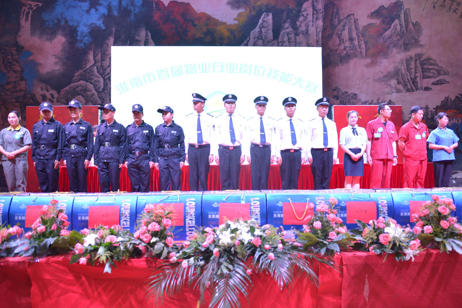 各獲獎選手在市首屆物業(yè)服務行業(yè)崗位技能賽閉幕式上上臺領獎