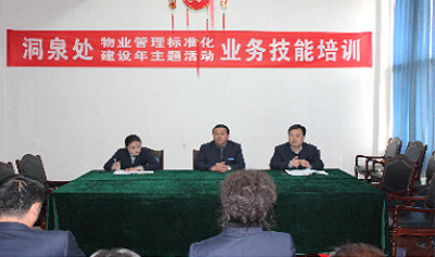洞泉處領(lǐng)導(dǎo)對此項活動十分重視,印發(fā)了《物業(yè)管理標(biāo)準(zhǔn)及操作規(guī)程》,安排處領(lǐng)導(dǎo)班子成員和部分項目負(fù)責(zé)人作為授課人,采取集中和現(xiàn)場培訓(xùn)相結(jié)合的方式,對小區(qū)辦、物業(yè)辦主任、客服員、保安員、保潔員、維修工等分工種進行業(yè)務(wù)技能培訓(xùn)、測試11場次;同時要求基層各單位強化自主培訓(xùn),在晨會及安全周會上有側(cè)重點的進行貫標(biāo)培訓(xùn),并將有關(guān)知識充分運用到實際工作中,將各項服務(wù)工作做精、做細(xì),擴大企業(yè)影響力。