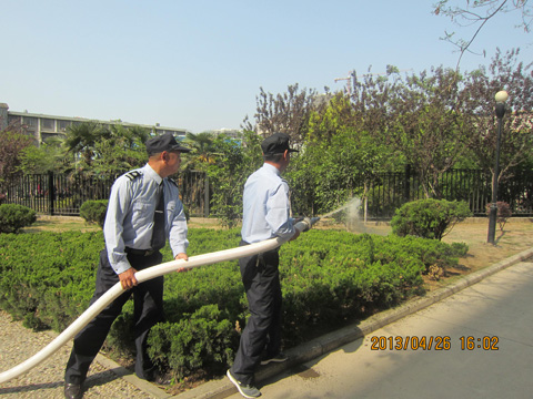 “立正、稍息……”一陣渾厚有力的口號(hào)聲在洗云居小區(qū)內(nèi)響開(kāi),這是八公山物業(yè)分公司組織開(kāi)展的保安業(yè)務(wù)技能模擬演練。為進(jìn)一步提高保安業(yè)務(wù)技能,提升服務(wù)質(zhì)量,八公山物業(yè)依據(jù)東華實(shí)業(yè)(集團(tuán))相關(guān)文件要求,聯(lián)合社區(qū),組織所有保安員在洗云居小區(qū)內(nèi)開(kāi)展了一場(chǎng)聲勢(shì)浩大的保安業(yè)務(wù)技能模擬演練。演練現(xiàn)場(chǎng),演習(xí)人員分別對(duì)高層電梯被困人員和小區(qū)突發(fā)火災(zāi)進(jìn)行了及時(shí)、正確的解救處理。保安員們規(guī)范、高效的工作表現(xiàn),贏得了圍觀群眾的陣陣掌聲,業(yè)主們都贊不絕口,豎起了敬佩的大拇指。此次演練,鞏固了小區(qū)保安的業(yè)務(wù)技能,強(qiáng)化了小區(qū)的服務(wù)管理,樹(shù)立了東華八公山物業(yè)服務(wù)的良好品牌形象,取得了預(yù)期效果。