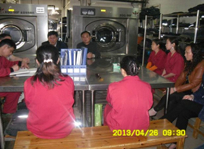4月26日早9點,項目部經(jīng)理劉文光同志來到項目部物業(yè)服務(wù)“標(biāo)準(zhǔn)化建設(shè)年”試點車間——洗衣車間,和車間職工一起參加班前會。會上,除了聽取了職工匯報工作情況及副隊長阮建彬同志對洗衣車間日常工作安排以外,劉文光同志還和大家一起以會代課,學(xué)習(xí)了集團(tuán)公司去年八起事故案例分析,并對大家提出了三點要求;一是要深刻吸取事故教訓(xùn),安全無小事,必須時刻保持警惕,不得存在半點疏忽,做好日常隱患排查整改落實工作,防止因考慮不周、安排不細(xì)、檢查不到位而發(fā)生不該發(fā)生的事故;二是要立足本職崗位,加強安全知識學(xué)習(xí),提高安全操作技能,樹立“安全第一,預(yù)防為主”的安全生產(chǎn)理念,強化“一切事故都是可以避免”的安全生產(chǎn)意識,筑牢安全生產(chǎn)防線;三要把學(xué)好安全知識,當(dāng)做關(guān)乎生命安全的大事,學(xué)好學(xué)精,應(yīng)用自如,并養(yǎng)成安全作業(yè)習(xí)慣,摒棄“三慣”思想,杜絕“三違”,嚴(yán)格按規(guī)程操作要求,規(guī)范作業(yè),用精通的業(yè)務(wù)和高超的技術(shù),提高自我保安能力,為確保車間在集團(tuán)公司六月底的物業(yè)服務(wù)“標(biāo)準(zhǔn)化建設(shè)年”考評達(dá)標(biāo)奠定安全基礎(chǔ)。