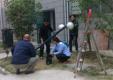 燈頭更換并非易事,每盞路燈都需整體拆卸放平,才能進(jìn)行作業(yè),然后還要將其重新安裝。整個(gè)小區(qū)共30盞路燈(60個(gè)燈頭),工作量之大可想而知。在此過程中,小區(qū)主任、保安班長等物業(yè)工作人員不怕辛苦,主動(dòng)配合甲方人員進(jìn)行維修,每盞路燈下都有他們?yōu)⒙涞暮顾?