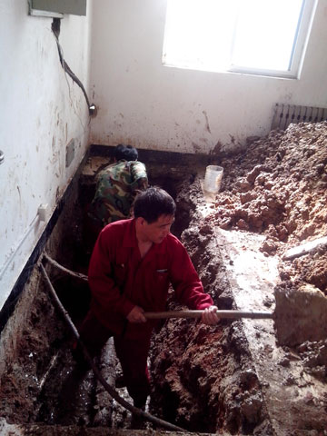 日前,潘北礦7號宿舍樓內(nèi)地面突然涌出大量流水,水漫延到走廊,路面,給職工出行帶來極大不便,后勤中心緊急請求東華潘北項目部抽調(diào)人手搶修,雖然超出了服務(wù)范圍,但考慮到東華實業(yè)在礦區(qū)的良好形象,項目部領(lǐng)導(dǎo)高度重視,立即安排水電維修班的“崗位技術(shù)能手”吳傳世師傅負責(zé)此事。