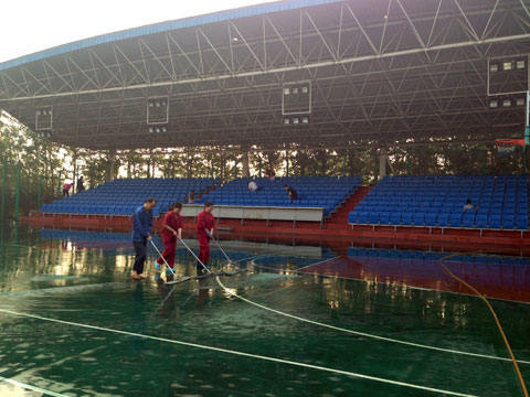 為慶祝中國共產(chǎn)黨成立92周年,同時推進“標準化建設(shè)年”活動順利的開展, 6月5日早上6點,項目部物業(yè)支部所屬的物業(yè)隊和機關(guān)的黨員以及入黨積極分子共計16人來到礦籃球場進行義務(wù)勞動,運輸支部和井下支部的部分黨員在得知消息后,主動要求加入到勞動中來。由于工作量比較大,大家對工作進行分工后,速度投入到工作中去,黨員們個個累得汗流浹背,以實際行動踐行黨員先進本色。經(jīng)過2個小時的辛勤勞動,籃球場內(nèi)的觀眾座椅和場地被清刷的干干凈凈,項目部的此項舉動得到了礦方工友的肯定和稱贊。