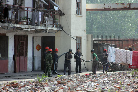 6月13日,單身宿舍新建的兩個水源井需要敷設(shè)供電線路,為了節(jié)約材料,決定把舊水源井的供電電纜撤下來供新水源井用,這一條供電線路關(guān)系著對礦內(nèi)生產(chǎn)供水的三個水源井,為了不影響生產(chǎn),電纜必須在一天之內(nèi)更換改造完畢,時間緊、任務(wù)重,為了確保工期,謝橋物業(yè)分公司的黨員突擊隊現(xiàn)場成立了,21名黨員兵分三路,各自帶領(lǐng)10余名男工,從三個地點分頭行動。90平方的電纜從5米的高空撤下,再重新架上5米的高空,從礦內(nèi)變壓器到單身宿舍水源井500多米的直線距離,黨員始終站在最前面,他們用手拽、用肩扛,使出了全身力氣,號子聲一浪高過一浪,老天也好像故意考驗黨員的意志,掛著明晃晃的太陽曬了一整天,為了趕時間,全體人員中午在現(xiàn)場吃了一點盒飯又繼續(xù)戰(zhàn)斗,下午5點鐘,順利完工,比預(yù)計的工期提前了兩個小時。