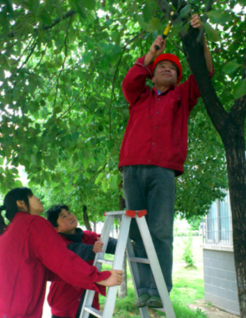 九龍東村主干道兩側樹木長的特別茂盛,自四五月份以來,不時有業(yè)主反映,有的樹枝長的太低,影響到正常他們的正常行走,且樹枝過份茂密也影響到夜間路燈照明。
