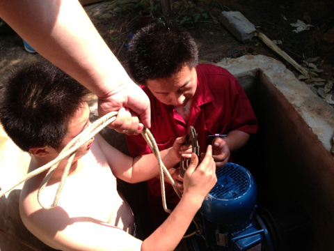 在搶修過程中,由于老水泵上的螺絲已經(jīng)銹蝕擰不下來,搶修人員想盡各種辦法,最后張孝康同志從自己家?guī)Я饲懈顧C來,和同事一點一點把已損壞的老水泵卸下,換上了新水泵,經(jīng)過10小時的搶修,供水終于暢通了,可是在室外將近40℃的高溫下,汗水一次一次濕透了他們。