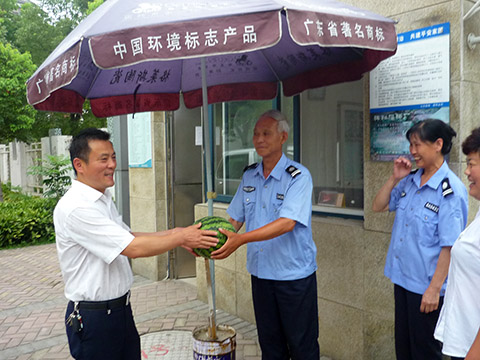 2013年7月,東華集團(tuán)公司領(lǐng)導(dǎo)連續(xù)多次到大通物業(yè)處,將東華農(nóng)莊生產(chǎn)的西瓜、蔬瓜送到一線工人手上,讓工人在炎炎夏日,感到了清爽的涼意。