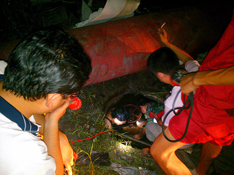 項目部值班領(lǐng)導親自組織人員趕赴現(xiàn)場,沿供水管路逐一進行排查,發(fā)現(xiàn)是選煤廠附近一處閘閥井,在當天下午礦方施工過程中,造成一閘閥芯脫落所致。隨后,水電值班人員在副隊長王根同志的帶領(lǐng)下,組織了多名水電人員,一邊準備材料,一邊對故障現(xiàn)場進行清理,特別是三次被公司評為“技術(shù)能手”稱號的班長王峰同志,不顧全身衣服被水沖濕,帶頭深入到狹小的閘閥井內(nèi)開展工作,經(jīng)過近二個多小時的搶修,終于恢復了正常供水。