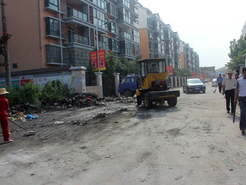 8月10日,謝橋物業(yè)分公司與礦方聯(lián)系,尋求援助,礦后勤中心出動(dòng)了一臺(tái)鏟車,三臺(tái)翻斗車,分公司組織了10余人,冒著40℃左右的高溫,配合鏟車,在烈日下清理散落的垃圾。任憑汗水迷住了雙眼,濕透衣衫,掛滿汗珠的臉被不斷擦拭的毛巾幾乎擦破了皮,垃圾翻動(dòng)后的惡臭夾雜著地面的熱浪陣陣襲來(lái),兩天時(shí)間里,所有人起早貪黑,避開(kāi)高溫時(shí)段,清理了所有垃圾,還居民一個(gè)干凈的環(huán)境。住在附近的農(nóng)村居民都說(shuō):“你們太辛苦了,以后我們不再亂倒垃圾了!