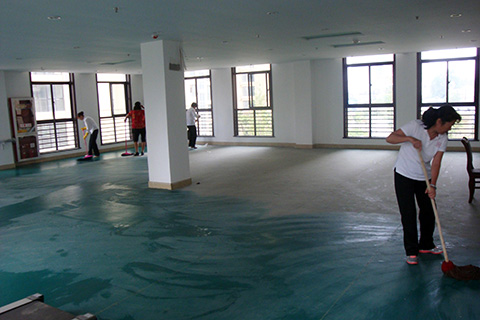 在突擊現(xiàn)場,物業(yè)處領(lǐng)導(dǎo)親自帶隊(duì),臟活累活帶頭干,在他們的帶動(dòng)下,其它人員也熱火朝天的干了起來,整整一天的忙碌,讓煙草局辦公樓的面貌煥然一新,得到了甲方的一致認(rèn)可。