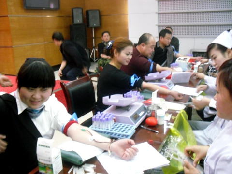 采血現(xiàn)場填表、測血壓、排隊(duì)化驗(yàn)有條不紊,秩序井然,通過身體檢查合格的同志們臉上掛著輕松樸實(shí)的微笑,大家一邊為自己能對社會做一點(diǎn)力所能及的事感到滿足和自豪;同時(shí)也用笑語嫣然的心情沖淡由于采血過程中產(chǎn)生的緊張心理。每人獻(xiàn)血量從200——400毫升不等,同志們用高高挽起衣袖,讓生命的色彩流淌出來,將愛心廣泛傳播,展現(xiàn)了東華人無私奉獻(xiàn)、助人為樂、心系天下,關(guān)愛生命的風(fēng)采。
