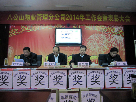 2014年1月17日下午,八公山物業(yè)管理分公司在視頻會議室召開了2014年工作會,會上宗升國經(jīng)理對去年的工作進行了回顧,表彰了兩個先進集體和27名先進個人,其中11名為勞務承攬工,以此激勵著分公司全體干群更加努力地工作。