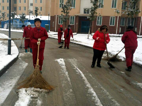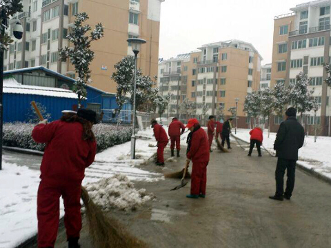 2014年2月6日晚,一場(chǎng)大雪如期而至,給小區(qū)居民出行造成不便,針對(duì)這一天氣情況,分公司領(lǐng)導(dǎo)班子緊急啟動(dòng)了防雪防凍預(yù)案,為使各小區(qū)業(yè)主在新年第一天上班出行不受影響,2月7日一大早,各小區(qū)開(kāi)展了緊急掃雪活動(dòng),全體員工拿著早已準(zhǔn)備好的鐵鍬、大掃帚在小區(qū)主干道上對(duì)路面積雪進(jìn)行清除。一時(shí)間,鐵鏟清脆的撞擊聲、人員調(diào)度聲充斥著整個(gè)干道,大伙的鞋濕了,身上冒了汗,可大家心里是高興的,干得特別起勁。想到自己的勞動(dòng)給業(yè)主帶來(lái)了便利,保障了業(yè)主的出行安全,大伙們都很有成就感。過(guò)往行人均不由駐足觀望片刻,贊許的目光和微笑投向共同奮戰(zhàn)、共建和諧的除雪隊(duì)伍。短短一上午的時(shí)間,各小區(qū)主要干道得到清掃,保障了各小區(qū)業(yè)主的出行安全。