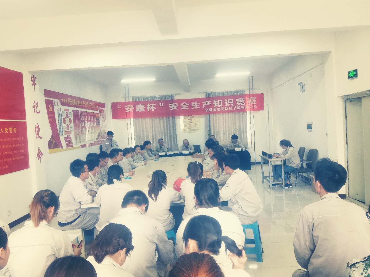 2019年6月18日寧夏金昱元炔烴節(jié)能有限公司“安康杯”知識(shí)競(jìng)賽在公司會(huì)議室隆重舉行。此次活動(dòng)共有五個(gè)代表隊(duì)參加,分別是:安環(huán)生產(chǎn)科代表隊(duì)、電石一裝置代表隊(duì)、電石二裝置代表隊(duì)、動(dòng)力裝置代表隊(duì)及原料裝置代表隊(duì)。參加此次活動(dòng)的主要領(lǐng)導(dǎo)有:公司安全總監(jiān)王鐵鎖同志、公司副總經(jīng)理邱少華同志、安環(huán)生產(chǎn)科科長(zhǎng)王興作同志及綜合管科科長(zhǎng)馬吉業(yè)同志,現(xiàn)場(chǎng)共有45名職工代表觀看了比賽。