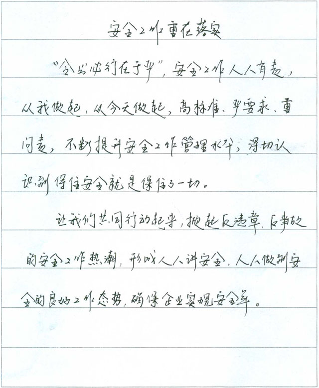 “我的崗位安全警言”鋼筆字比賽